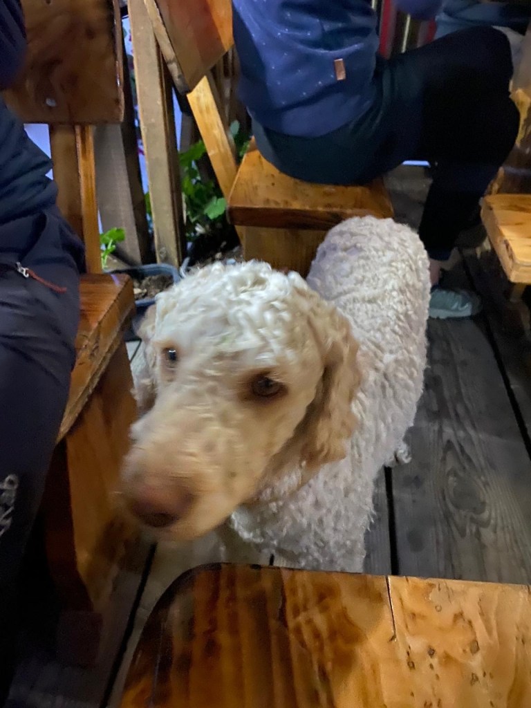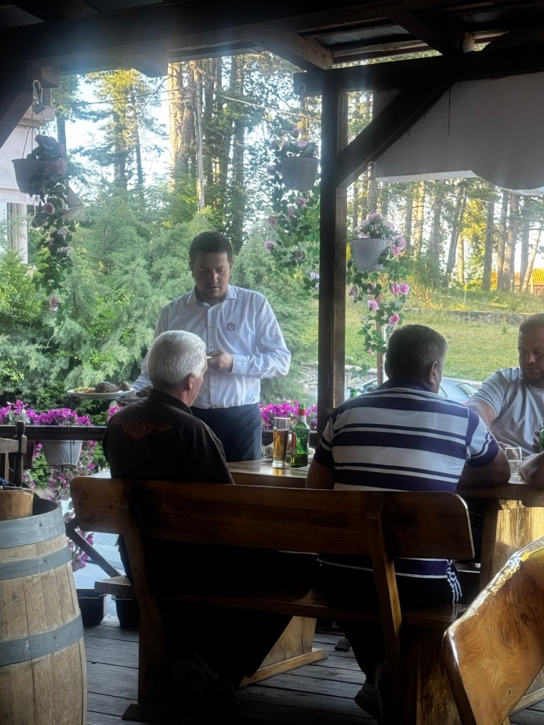 Małej, swojskiej, bez filtra. W środku na tarasie słabo wyczuwalny dym papierosowy, choć palili prawie wszyscy i psy pod stołami oraz ludzie, którzy wyglądali, jakby czas się tu zatrzymał. Palili, rozmawiali, byli obecni – bez pośpiechu, bez telefonów, jakby świat na zewnątrz nie istniał.
