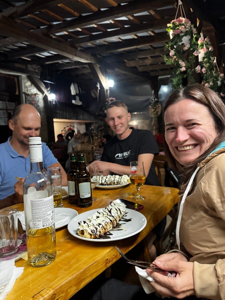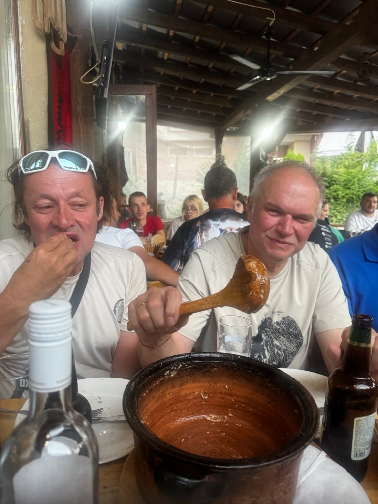 Na stole pojawiała się szopska sałatka, kebaby na metalowych patykach, duszone mięsa, grillowane macedońskie specjały – wszystko aromatyczne, domowe, genialne.