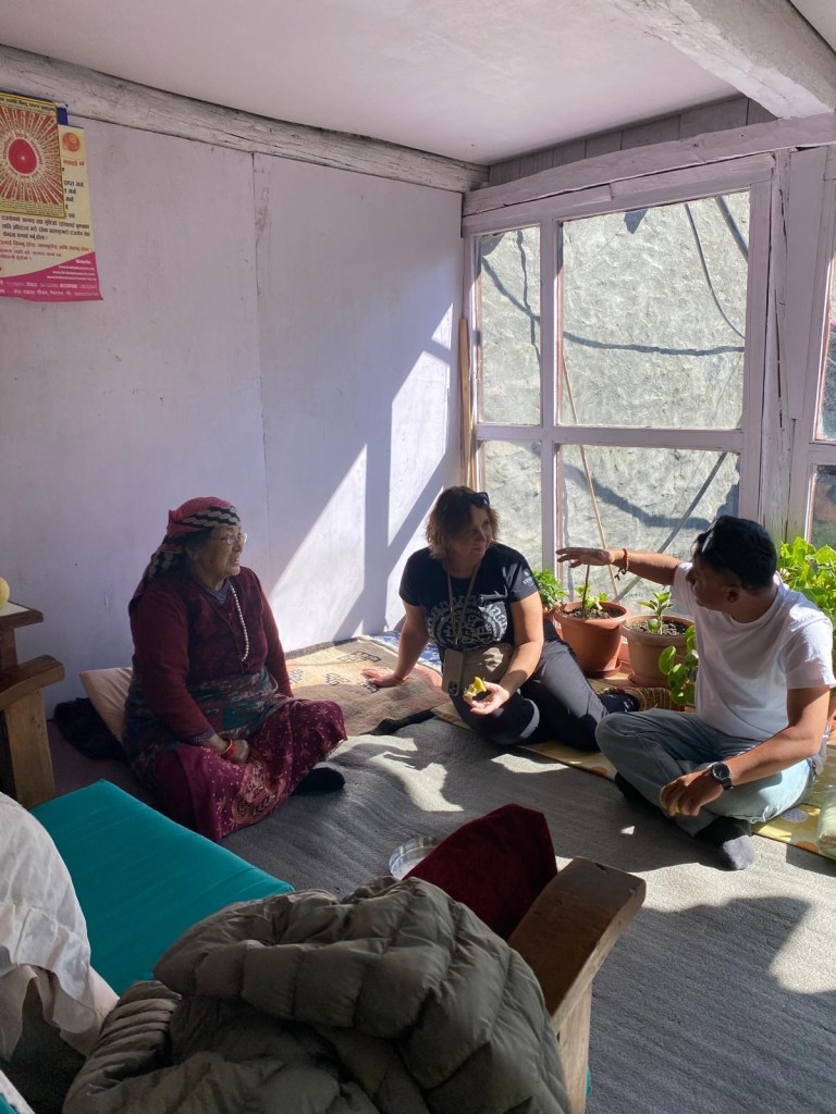 Spotkanie zaczęło się od przemiłego, jak to w Nepalu, „posiedzenia”. Zostaliśmy ugoszczeni jabłkami przez jego żonę — świeżymi, soczystymi, pachnącymi górami. Tymi, które rosną w sądach miasteczka. Widać było, że czekali na nas. W ich spojrzeniach było coś wzniosłego, jakby to nie był zwykły dzień.