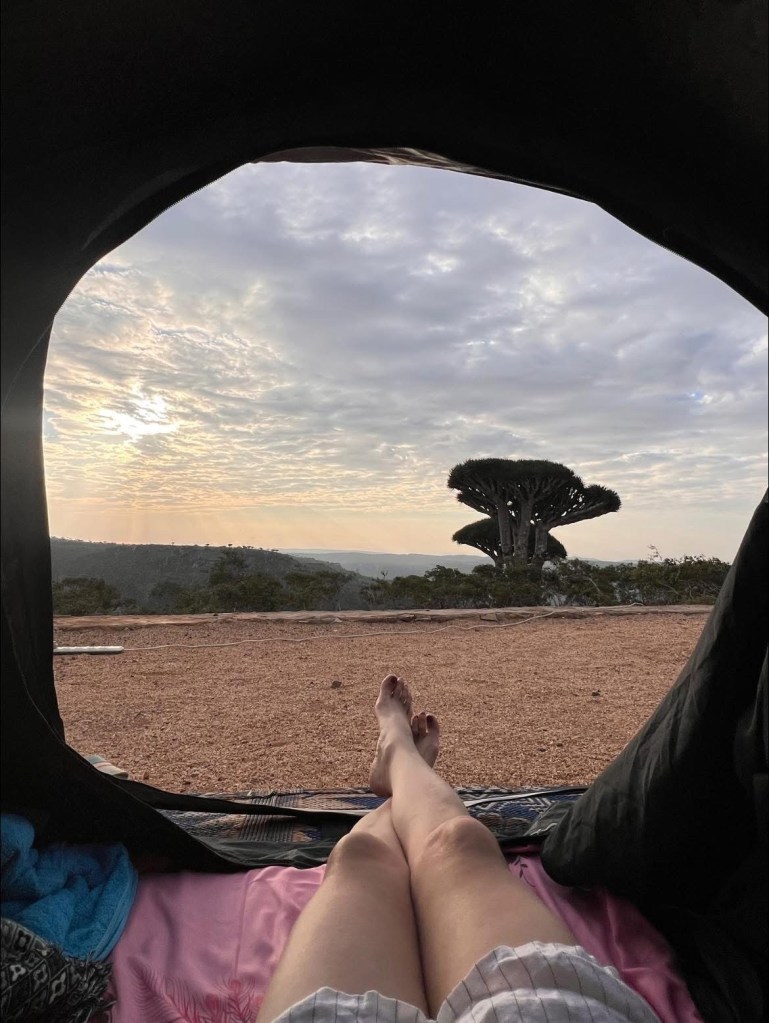 Spali w jednoosobowych namiotach. Wygodnie, choć z tym uroczym elementem – żeby wejść, trzeba się było wczołgać. Basia śmiała się, że pół jej nóg zawsze zostawało na zewnątrz, wystawionych na piasek i niebo. „I widziałam morze” – powiedziała. I w tej sekundzie usłyszałam jej głos tak, jakby znów siedziała tam, na Sokotrze, z bosymi stopami w arabskim piasku, z myślami rozbieganymi po horyzoncie