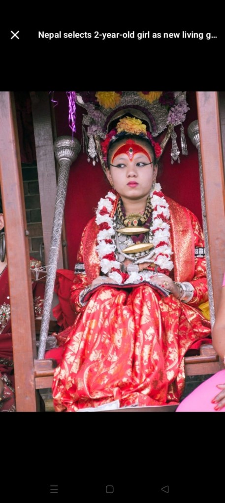 Każdego dnia maluje się jej oczy czarnym konturem, wkłada czerwoną szatę i złoty diadem. Rzadko pokazuje się światu – na kilka sekund w oknie. Ludzie czekają godzinami, wierząc, że spojrzenie Kumari przynosi błogosławieństwo.