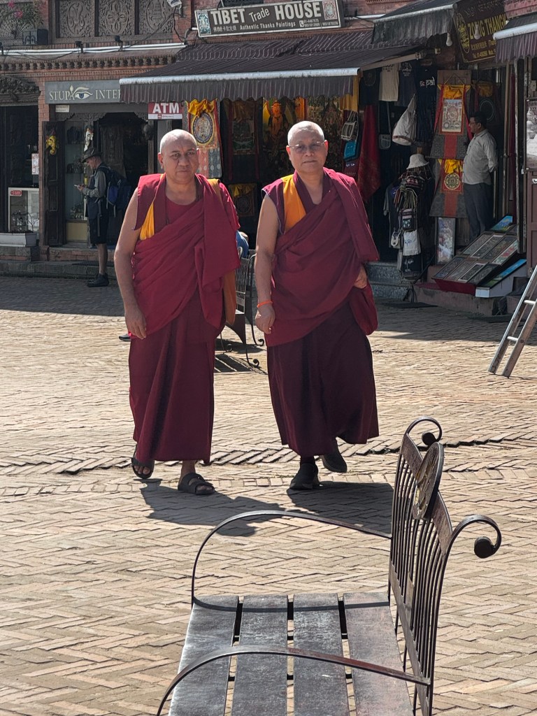 Wdrapując się po kamiennych schodach, mijaliśmy małpy – nieodłączny element świątynnego krajobrazu. Przemykały między pielgrzymami, rozrabiały, kradły ofiary z ołtarzy i z ciekawością przyglądały się turystom. Na szczycie unosiły się chorągiewki modlitewne, wiatr niósł ich szept nad dolinę, a oczy Buddy spoglądały spokojnie na świat z każdego kierunku. Tam, w tym gwarze i spokoju zarazem, poczułam, że naprawdę jestem w Nepalu.