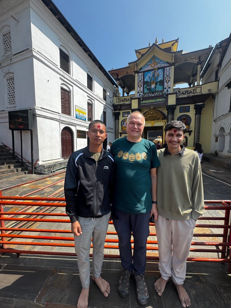 Później pojechaliśmy nad rzekę Bagmati, do kompleksu Pashupatinath – najświętszego miejsca dla nepalskich hinduistów. To tutaj odbywają się pogrzeby kremacyjne na otwartym powietrzu. Dym unoszący się nad rzeką przywołał mi na myśl Waranasi – tam też ogień żegna zmarłych, a życie i śmierć splatają się tuż obok siebie.