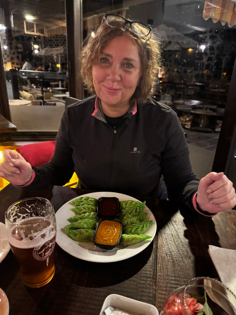 Gdy odetchnęliśmy po drodze, zaczęło się szaleństwo zakupowe – sklepy pełne odzieży i sprzętu dla trekkerów. Kuszące witryny z plecakami, kurtkami, butami… Trudno było przejść obojętnie. Ja kupowałam kurtkę za kurtką: dla wnuczki, dla synów, dla męża i dla siebie. Gdy doliczyłam się siedmiu sztuk, pomyślałam, że wciąż mało! 😄