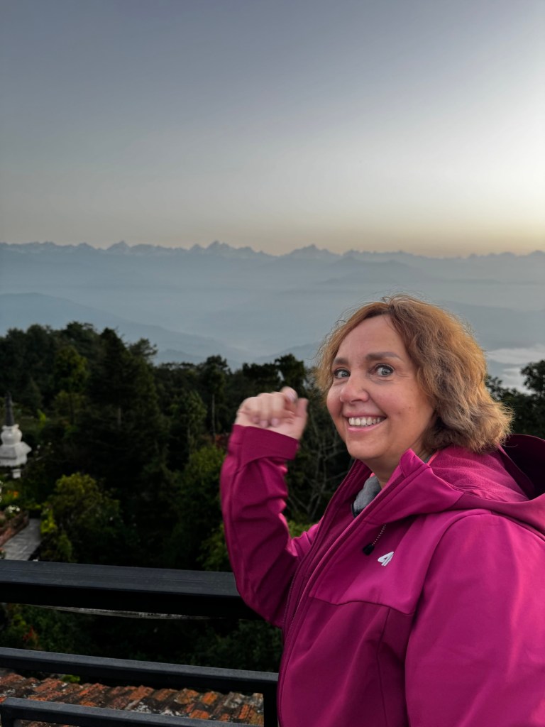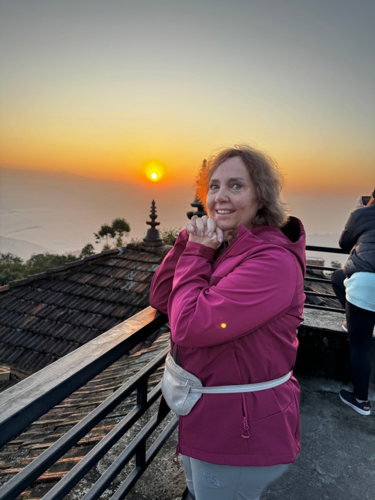 Po krótkiej ceremonii błogosławieństwa, gdy na czołach pojawiła się tika – czerwona kropka z proszku kumkum – wyruszyliśmy do Nagarkot. Górskie miasteczko słynie z widoków na Himalaje, a my mieliśmy zobaczyć je po raz pierwszy – o świcie, w różowym świetle słońca.