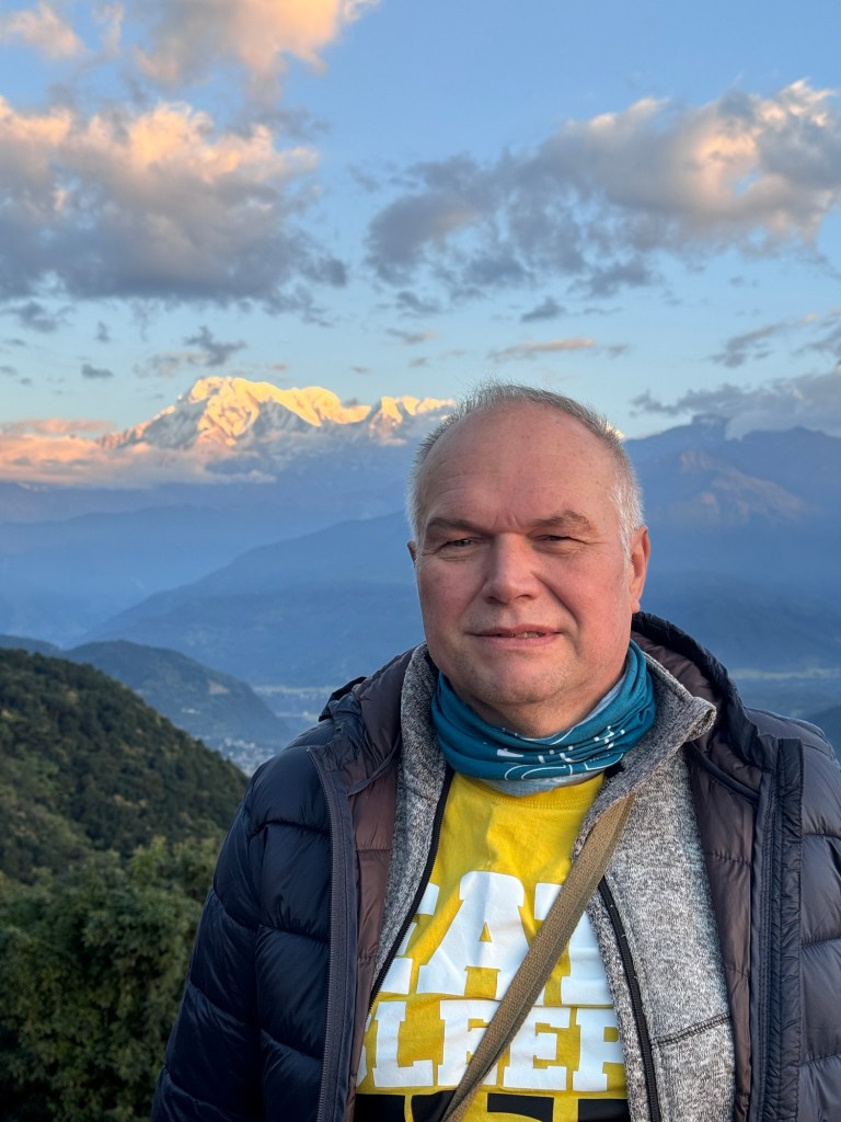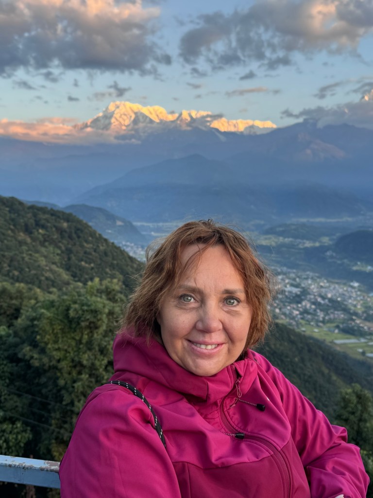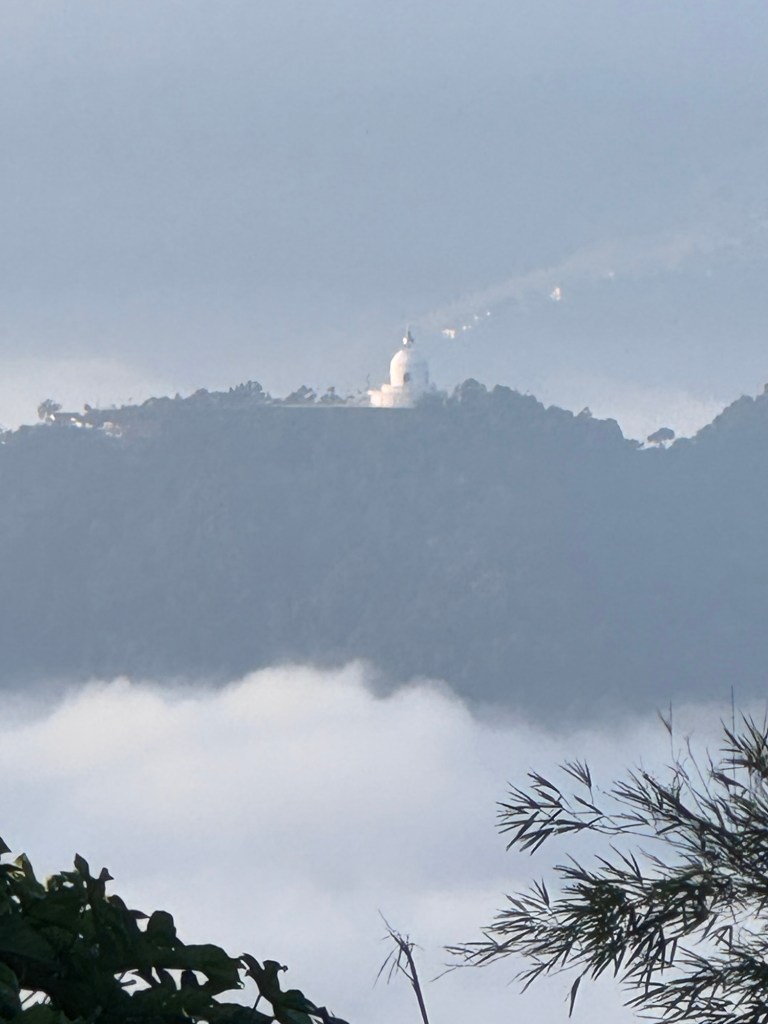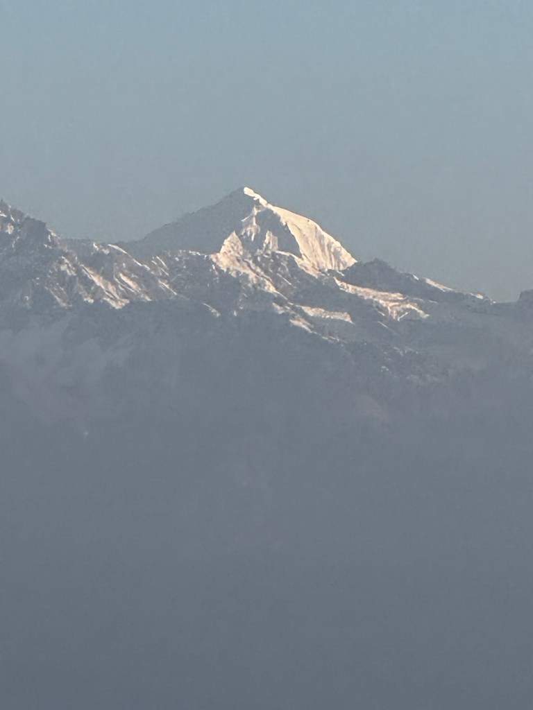 Zdążyliśmy. Przed nami rozpościerał się łańcuch Himalajów – w świetle wschodu majaczyły Langtang i Gaurishankar, a przy dobrej widoczności podobno widać nawet dalsze masywy Everestu. Gdy promienie przebiły się przez poranną mgłę, ludzie wokół zaczęli bić brawo – jakby witali słońce.
