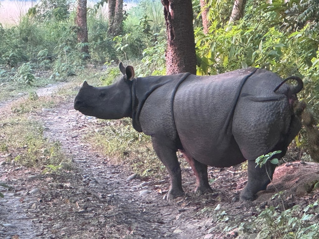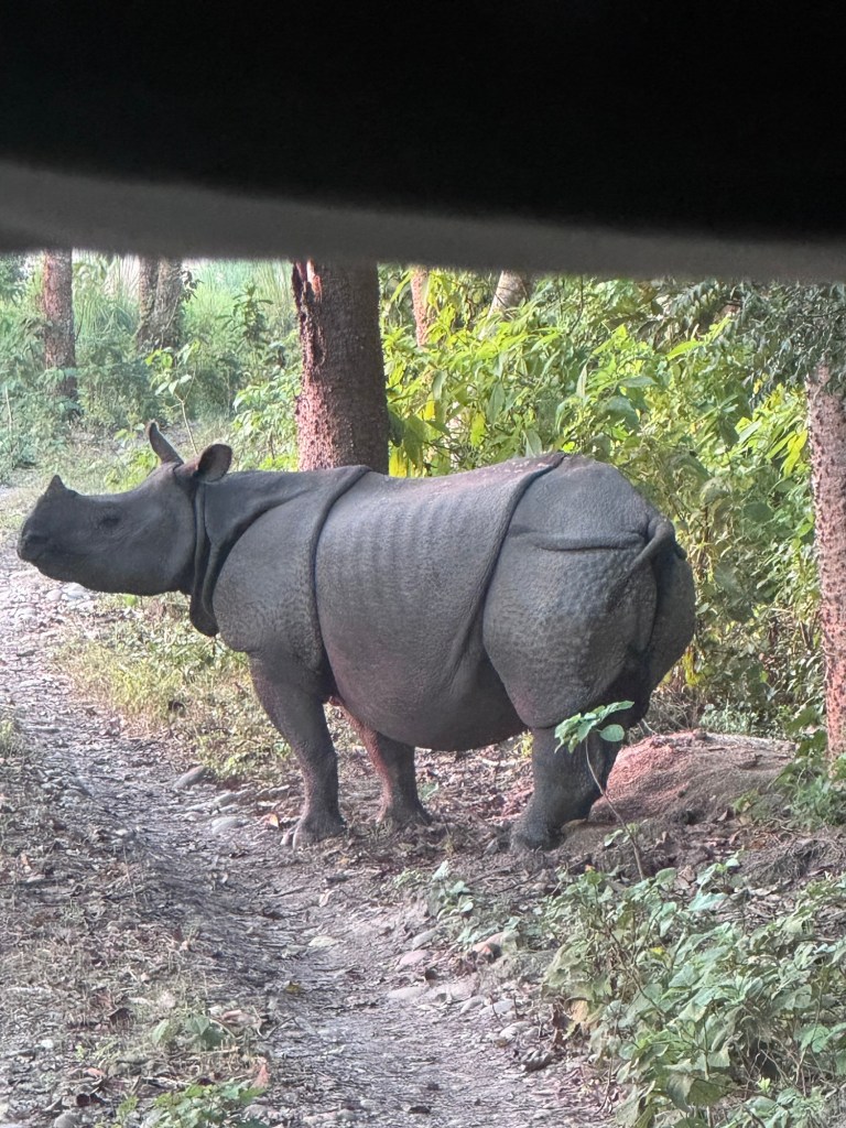 Nosorożec wyszedł na drogę, kiedy już pogodziłam się z porażką. Nepal lubi nagradzać cierpliwych.