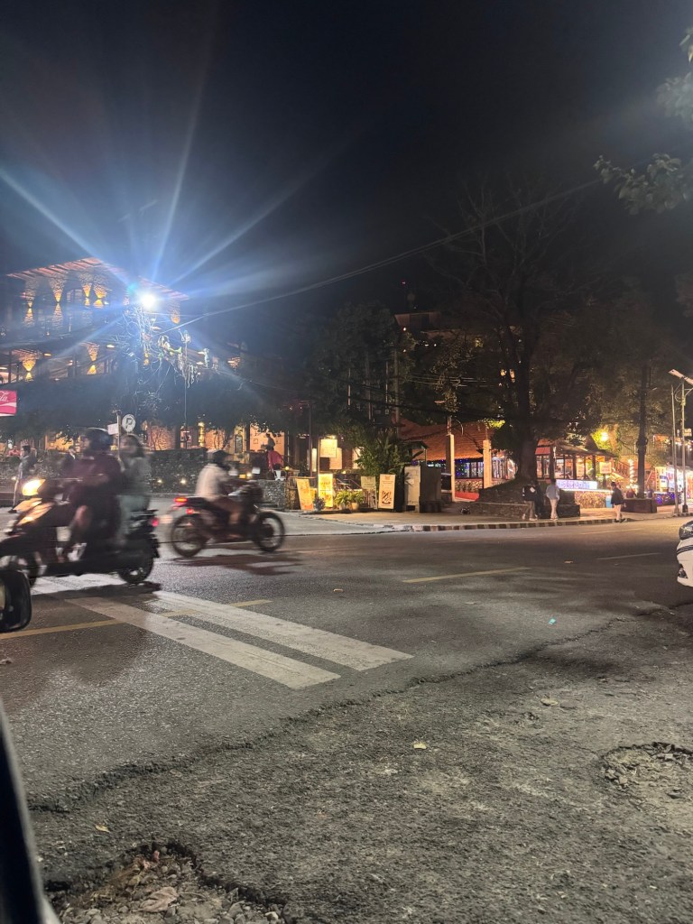 Wieczorem Deepawali – Święto Świateł. Girlandy lampek, płomyki oliwne w drzwiach, muzyka, dzieci z iskierkami. Kozy i osiołki jak część święta. Szyldy: Hotel Mount Everest, Himalaya View, Snow Peak Lodge. Całe miasteczko tańczy w blasku. Prosta radość życia.
