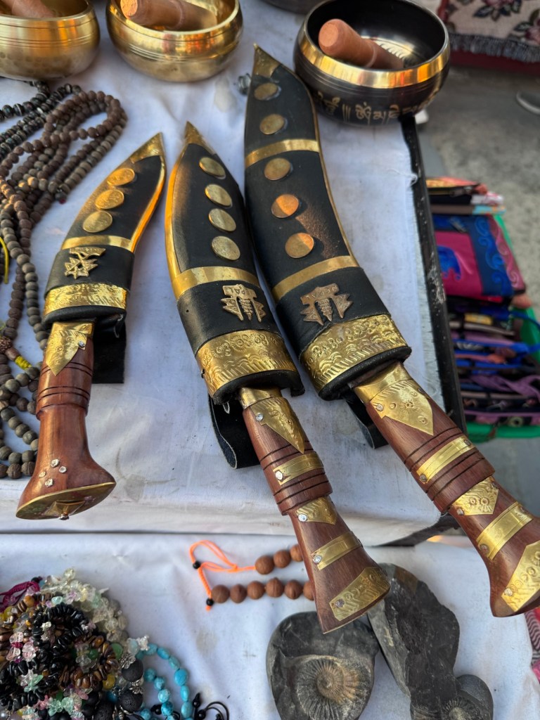 Potem – historia walecznych Gurkhów: legendarni wojownicy znani z odwagi i lojalności, od pokoleń służący w elitarnych jednostkach. Ich symbolem jest nóż kukri – zakrzywione ostrze, które towarzyszyło im w walce. W muzeum i sklepach – dziesiątki kukri: jedne prawdziwe, inne ozdobne, wszystkie przypominające o duchu tych ludzi.