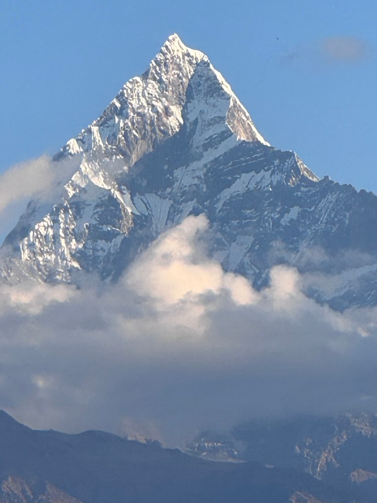 W porannym świetle Annapurna ukazała się w całej okazałości – potężna, spokojna, niedostępna. Patrzyliśmy w ciszy, z poczuciem, że stoimy u stóp czegoś większego niż człowiek.