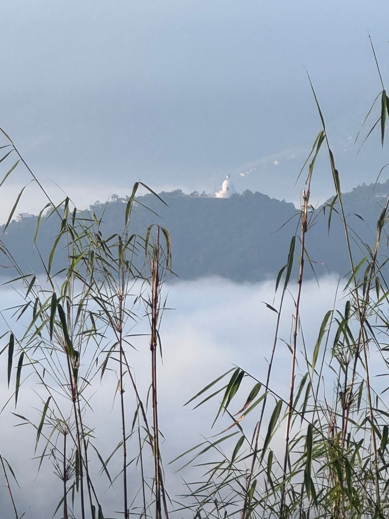 Wodospad Devi’s Fall hukiem przeczył temu, że to wciąż środek miasta. A na koniec dnia – wzgórze z widokiem na całą Pokharę i Phewa. W cieniu świątyni, wśród powiewających flag, medytowaliśmy z Binodem. Cisza, wiatr, dzwonki i śpiew ptaków – jeden z najspokojniejszych momentów podróży.