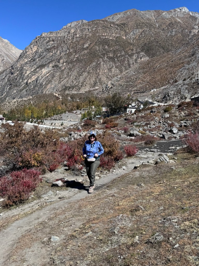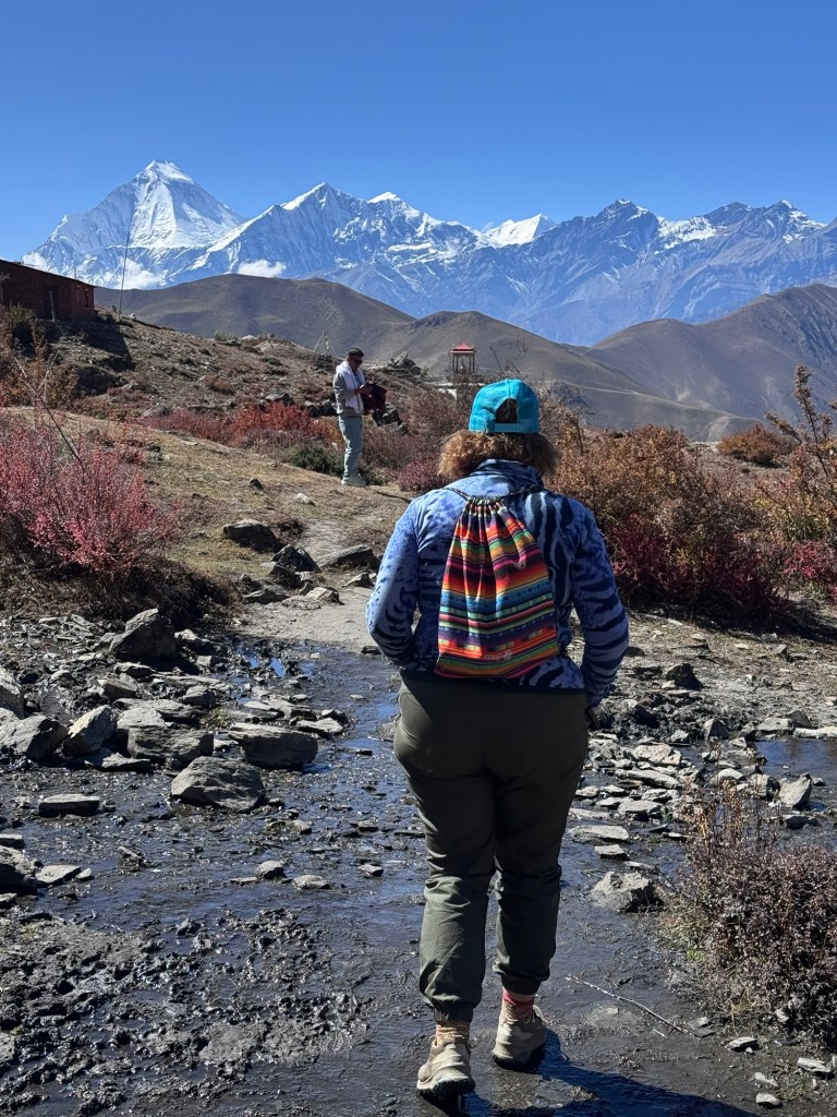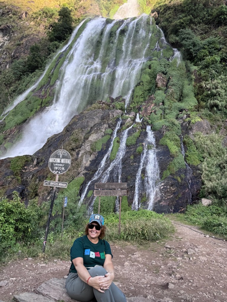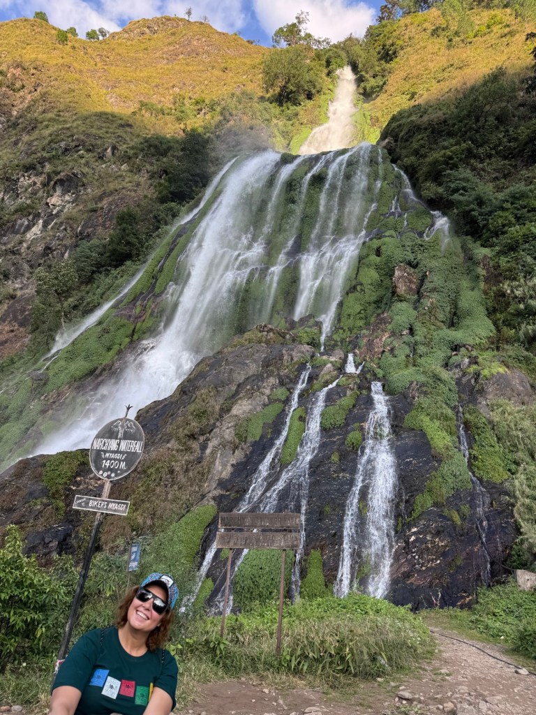 W Tatopani z okna widać było rzekę i góry. Za miasteczkiem – wioska i wodospad. Prowadziły do niego kamienne schody; zaczęliśmy pierwszą prawdziwą wędrówkę. W tle Himalaje, wokół złocące się pola, kozy, błękitne niebo. Schodów dużo – w połowie chciałam się poddać. Coca-Cola w barze, „idźcie dalej beze mnie”. Nie odpuścili. Poszliśmy razem. Na górze – błyszcząca mgła, chłodny powiew, poczucie, że jesteśmy dokładnie tam, gdzie trzeba.