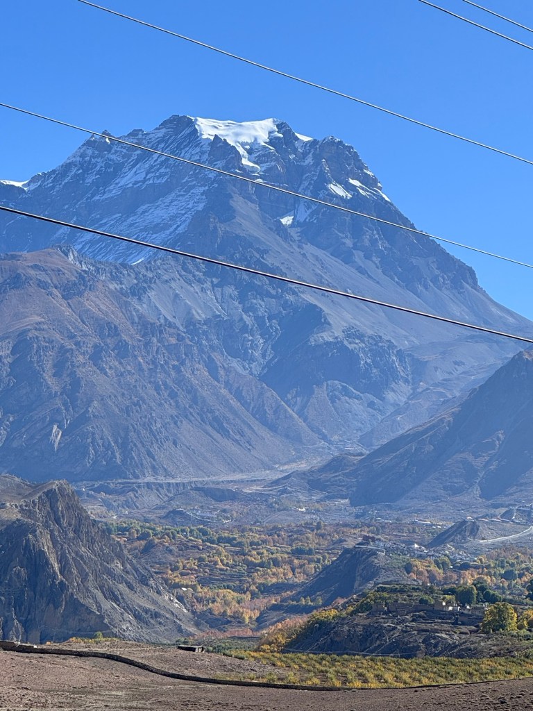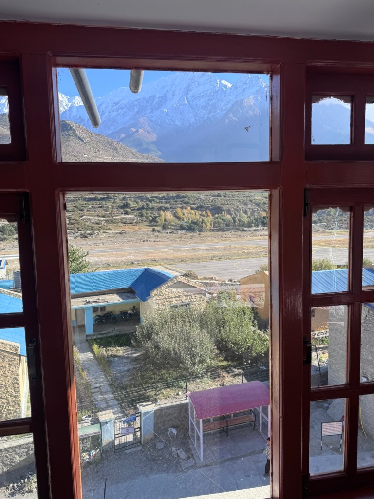 Jomsom – miasteczko z lotniskiem, wysoko w górach. Z okna pokoju jedna z ośmiotysięcznych – może Dhaulagiri, może Nilgiri – strażniczka doliny w złocie zachodu.
