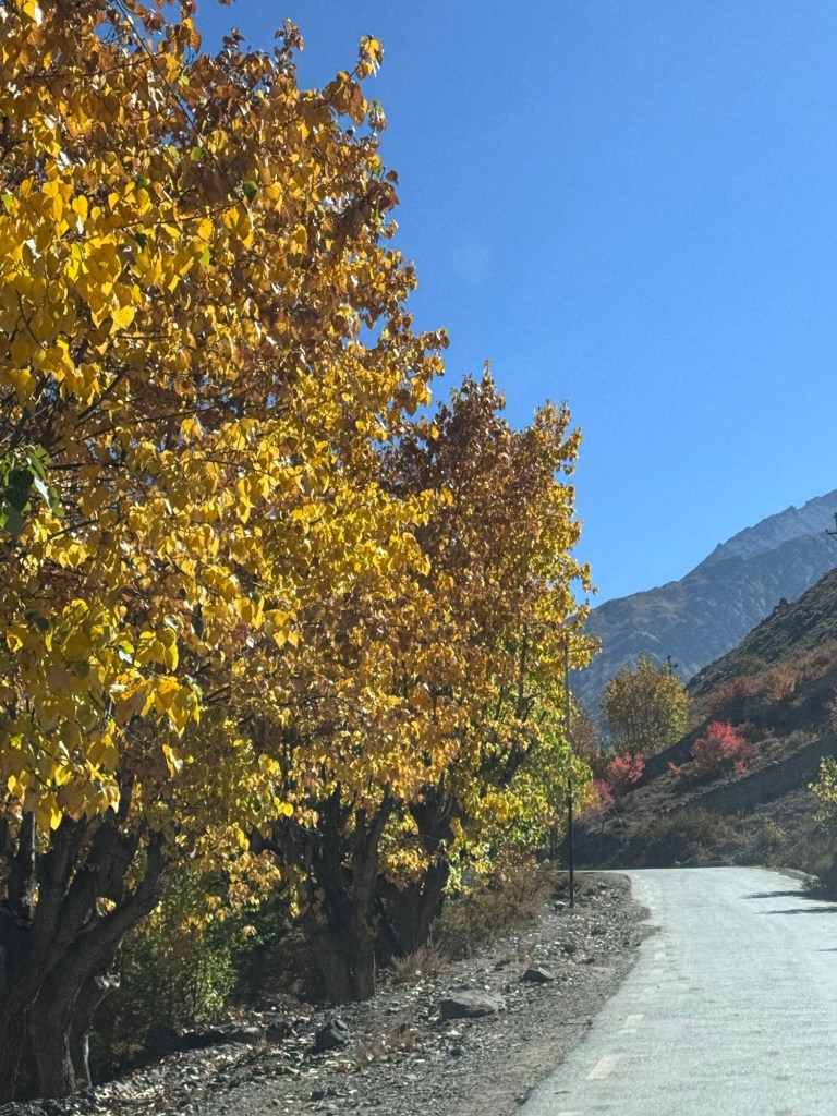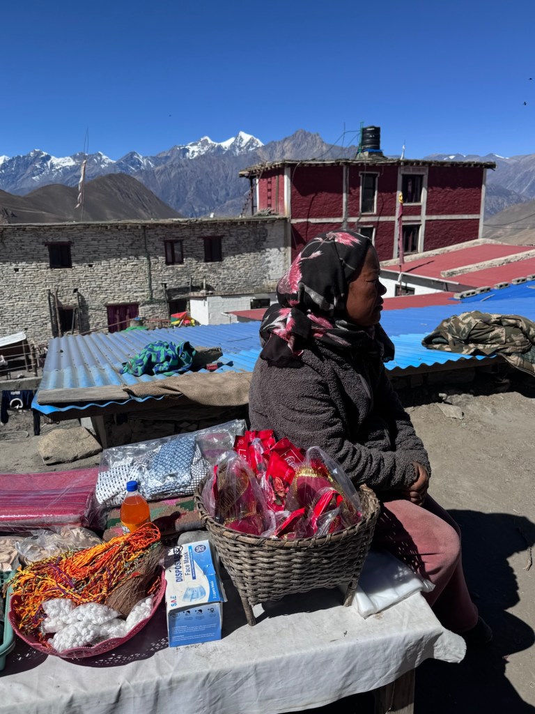 No i dalej – w głąb gór. Pokhara została za nami. Droga wiła się nad przepaściami, zakręty prowadziły w chmury. W miasteczku otoczonym sadami jabłkowymi kupiłam kaszmirowy szal – prezent dla młodej mamy naszej Wiktorii.