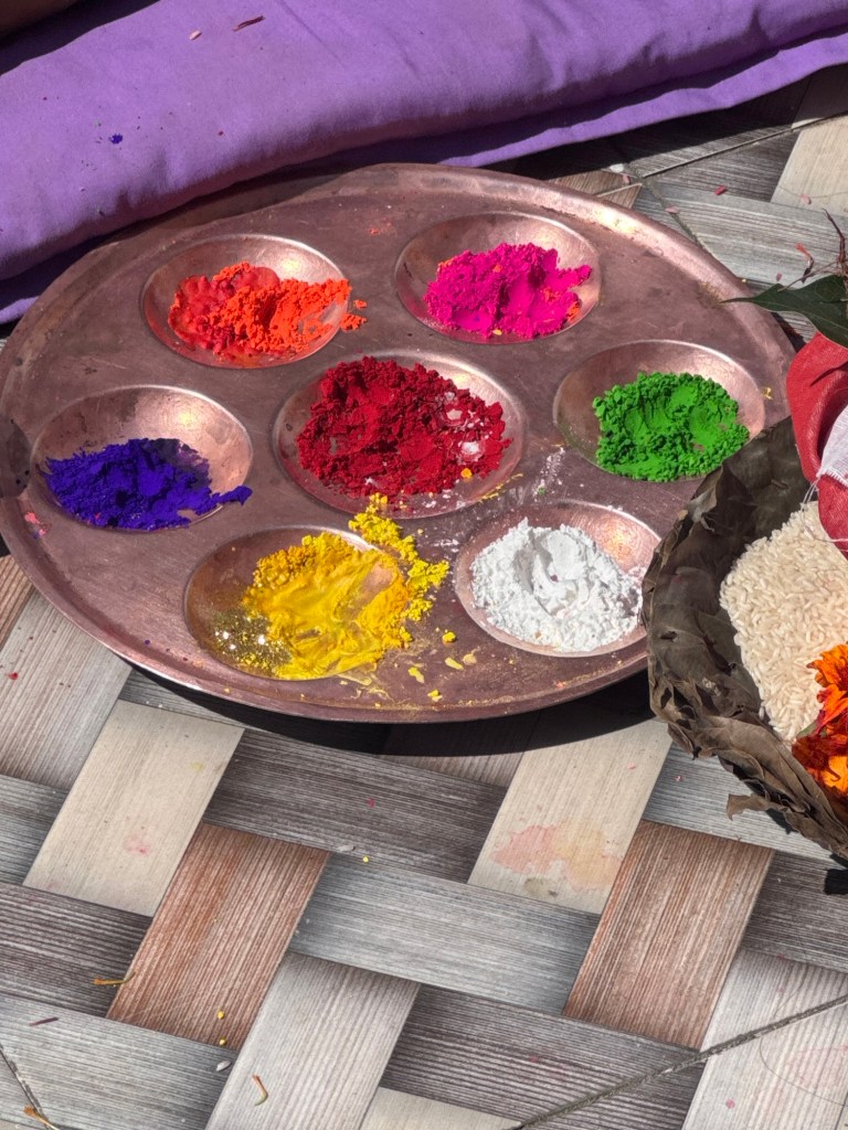 Siostra oczyszcza przestrzeń, zapala lampki, rozbija orzecha kokosowego. Namaszcza czoła braci olejem, nakłada tikę w siedmiu kolorach: czerwony – miłość i siła, żółty – mądrość, niebieski – odwaga, biały – czystość, zielony – harmonia… Potem karmi jogurtem, częstuje słodyczami i daje drobne prezenty. Brat odwzajemnia gest.