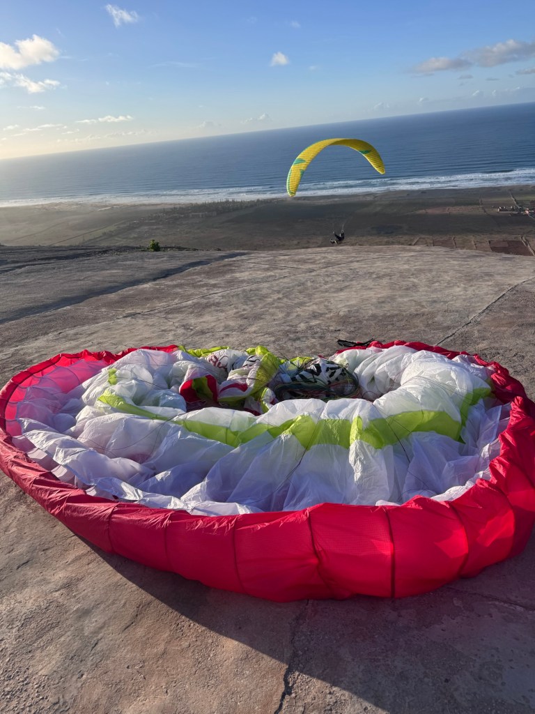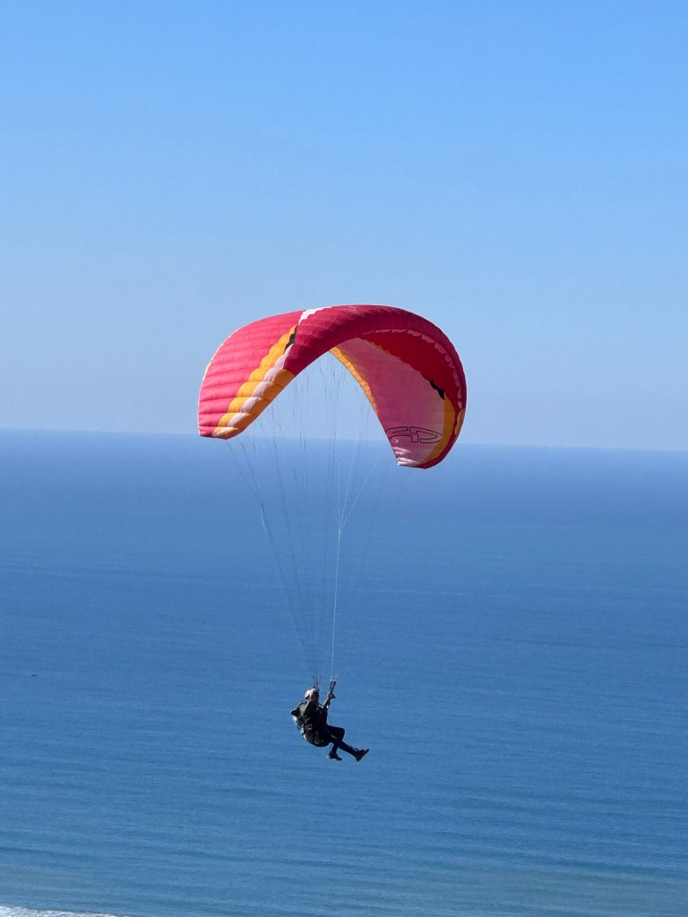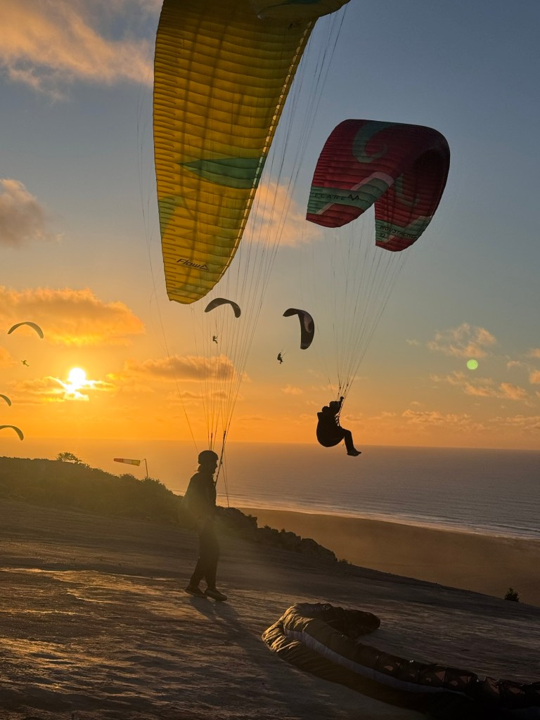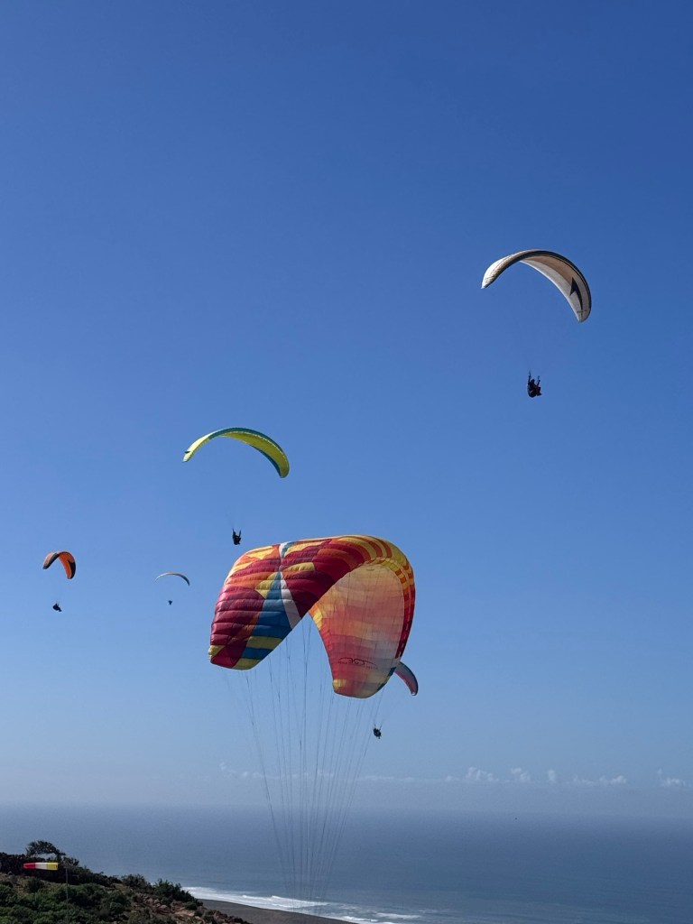 Słońce, niebieskie niebo, ciepłe powietrze. Wspaniali ludzie. Paralotniarze unoszący się nad klifami, rysujący kolorowe ślady na tle nieba, a ja — po raz kolejny w swoim życiu — stojąca z boku i patrząca na to szaleństwo z zachwytem i niepokojem.