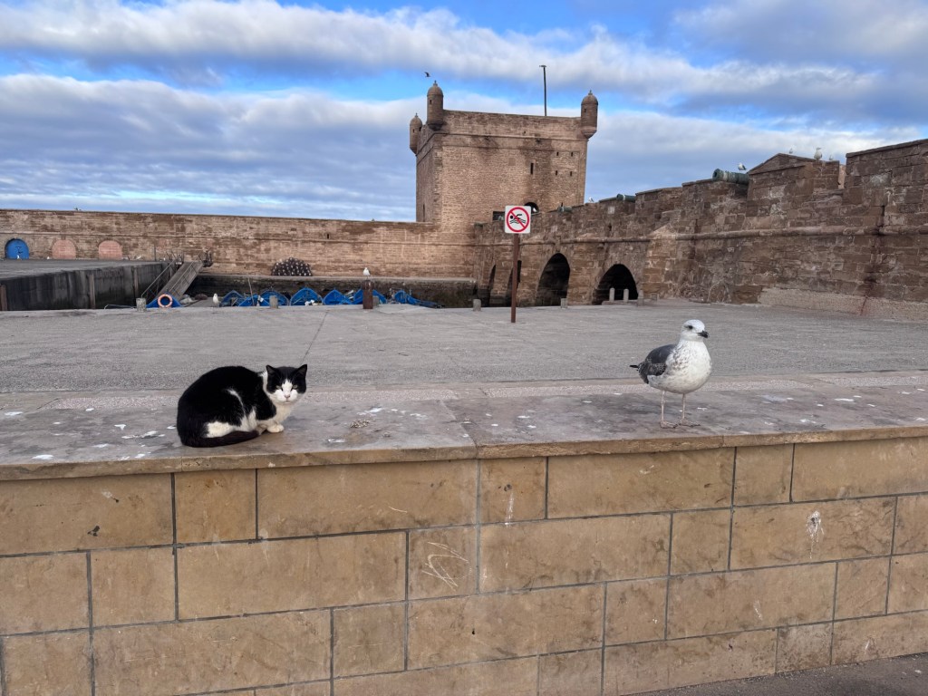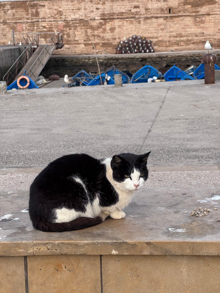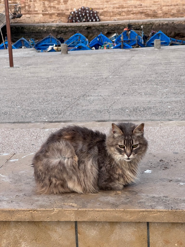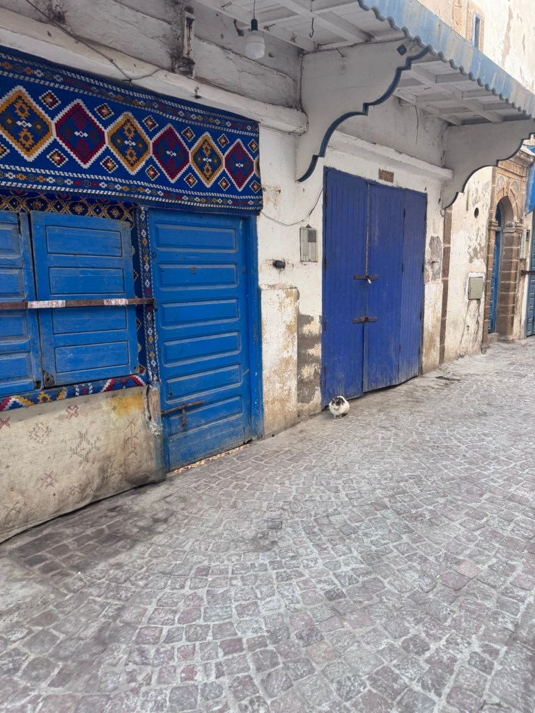Biel murów i niebieskie drzwi, medyna, w której zakupy są częścią spaceru — raz galeria, raz warsztat, raz stragan. Port żyjący własnym rytmem: rybacy, sieci, targowanie się o świeżą rybę. Mewy jak aktorki, koty jak modele.
