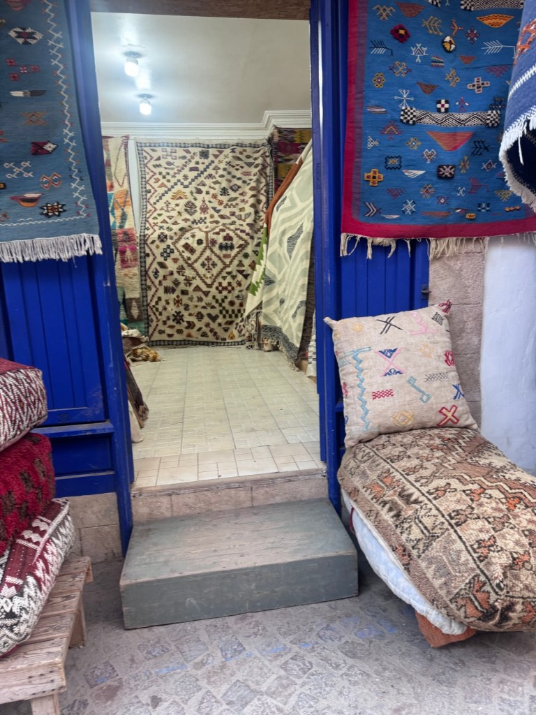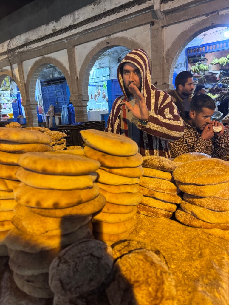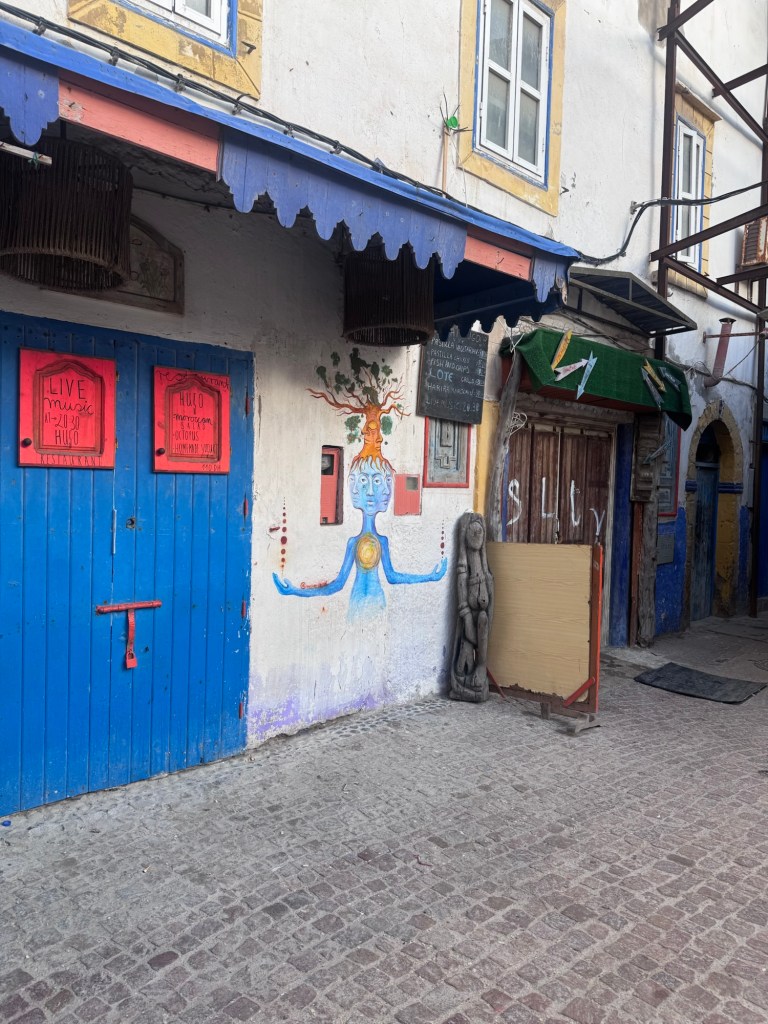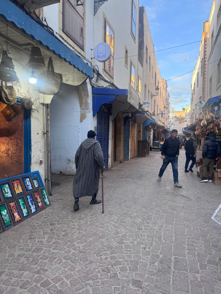 Biel murów i niebieskie drzwi, medyna, w której zakupy są częścią spaceru — raz galeria, raz warsztat, raz stragan. Port żyjący własnym rytmem: rybacy, sieci, targowanie się o świeżą rybę. Mewy jak aktorki, koty jak modele.