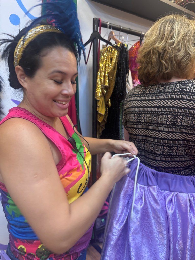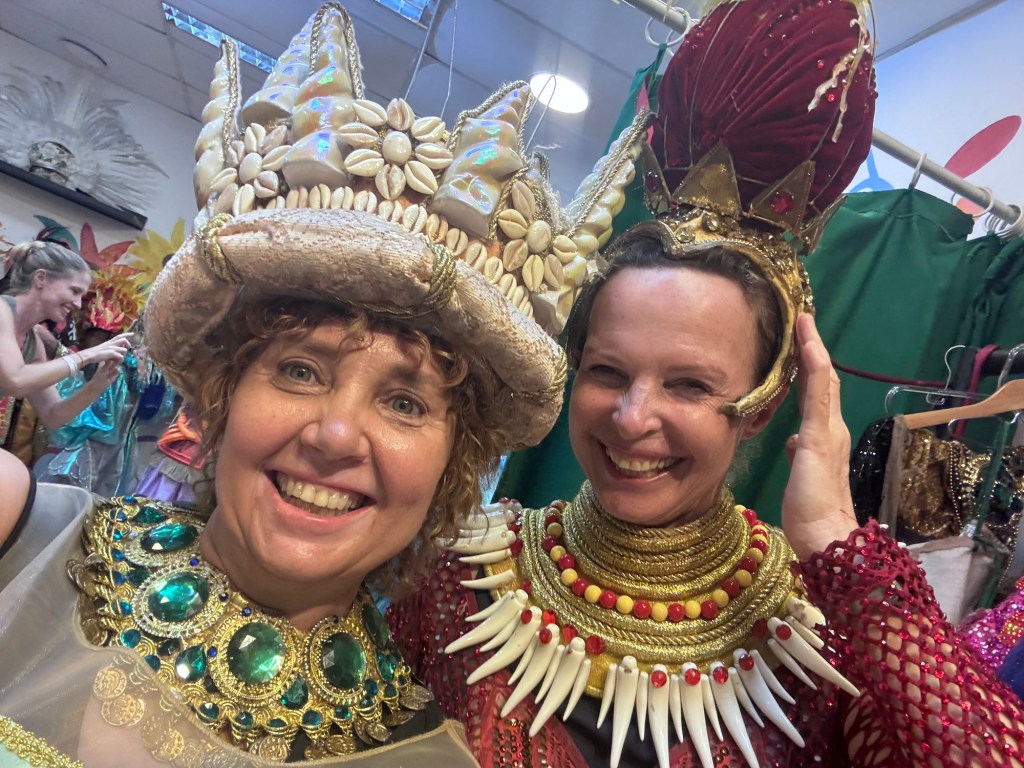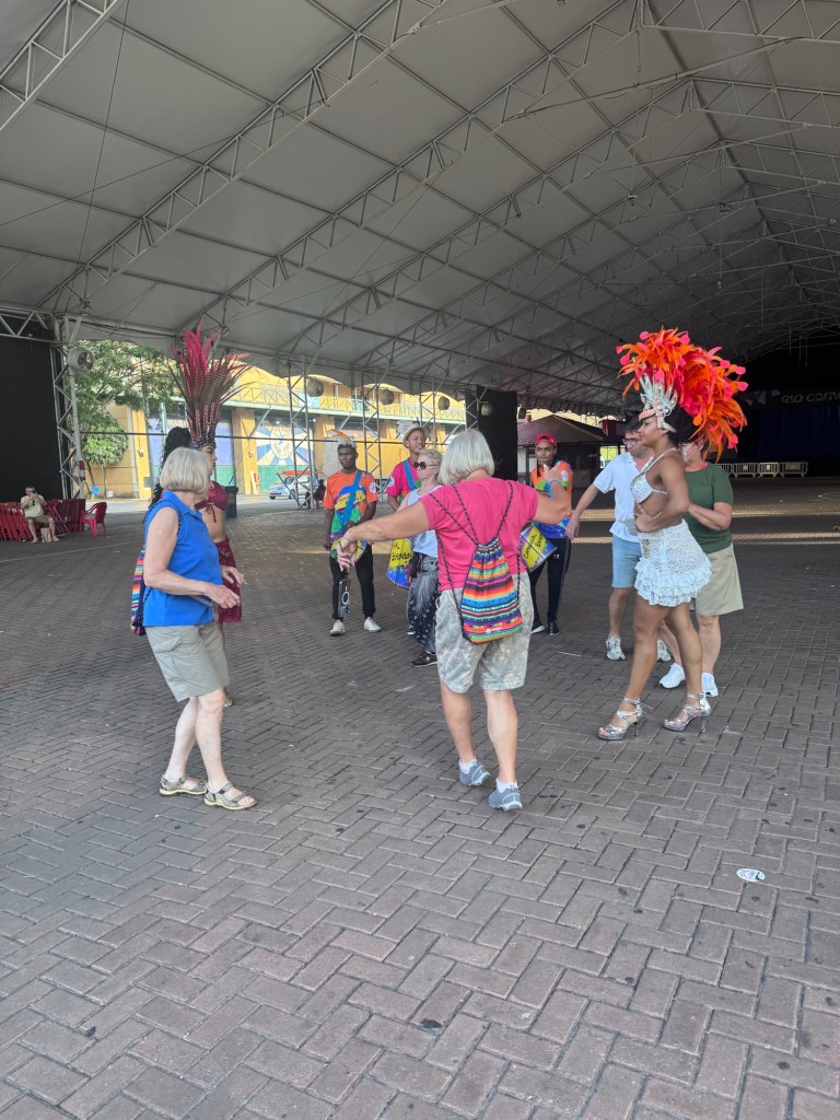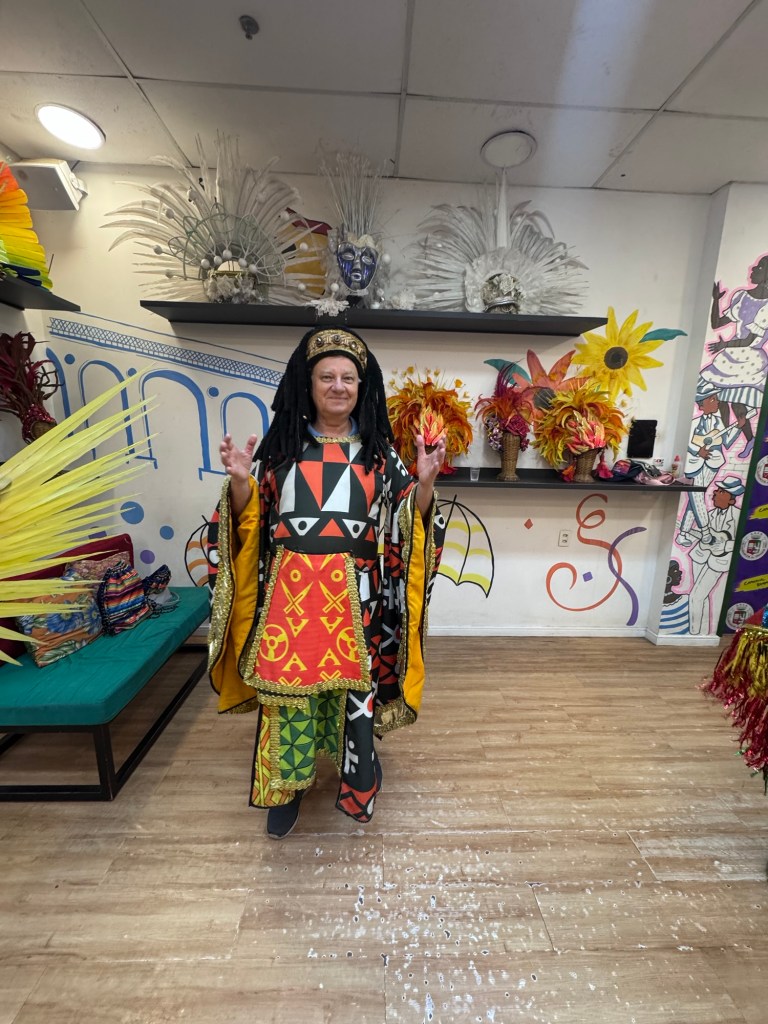 Po powrocie do Rio zajrzeliśmy jeszcze do Miasta Samby, żeby zobaczyć, jak powstają te niezwykłe konstrukcje i kostiumy, które nocą na Sambodromie wyglądają jak czysta magia. Nawet przebraliśmy się w karnawałowe stroje, by choć na chwilę poczuć się jak artyści jednej ze szkół samby.